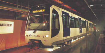 Op 20 februari 2008 vond in de Bombardierfabriek in Bautzen de feestelijke presentatie plaats van het eerste voor RandstadRail bestemde metrostel.Foto: Maurits van den Toorn