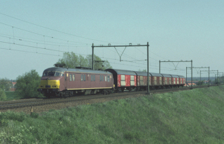 In de jaren zestig werd het in- en uitladen van postzendingen uit de reizigerstreindienst gehaald. Aanvankelijk met verbouwde ′buffer′-motorwagens, vanaf 1965 met 35 speciaal gebouwde trekkrachten werd een afzonderlijk postnet ingevoerd. De mP′s konden ook gekoppeld rijden, met elkaar en met speciale snelgoedwagens. Op 13 mei 1982 beklimt trein 133172 de brughelling bij Culemborg. Foto: Roef Ankersmit.