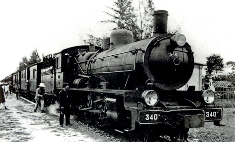 De in Lille gebouwde 2’C-sneltrein-locomotief no. 340 wordt gereed gemaakt voor vertrek. Quang Tri, 1935. Foto: verzameling Tim Doling.