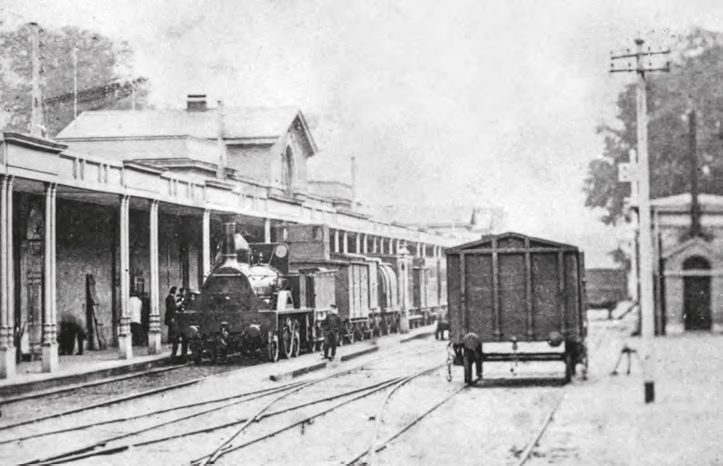 Omstreeks 1865 staat HSM locomotief ‘Holland’ met een trein in het oude station van Haarlem, niet lang voor de spoorversmalling. Dit is de enige bekende foto van een breedspoortrein in Nederland.