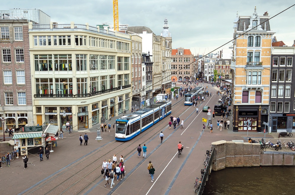 Het aantal trams door de Leidsestraat verminderde met een vijfde. De 2047 op ‘toeristenspitslijn’ 11 op het Koningsplein; 21 augustus 2019.