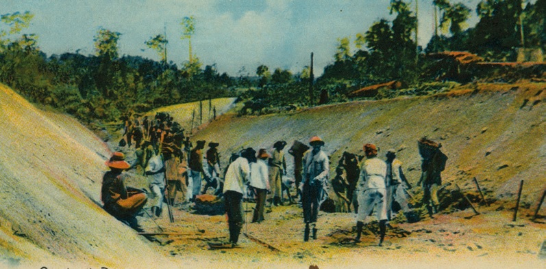 Het eiland Poeloe Laoet lag nooit in het centrum van de toeristenstromen. Toch was de aanleg van de spoorweg van de kolenmijn op dat eiland reden er een ansichtkaart aan te wijden. Sembelimbingan, 1903.
