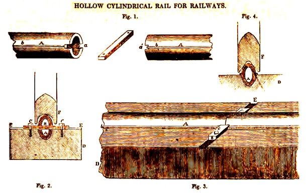 Het moge bekend zijn dat er naast de tegenwoordig algemeen gebruikte platvoetrail (ook vignole genoemd) nog andere rails gebruikt worden, zoals de bullhead rail die in Groot-Brittannië nog steeds op hoofdsporen voorkomt en de double champignon rail die je in Frankrijk nog op nevenlijnen en zijsporen vindt1. Dat is ooit anders geweest. Vanaf het begin van het ontstaan van de spoorwegen zijn er vele tientallen soorten rails bedacht en deels ook in gebruik geweest. Eén van die soorten is de buisrail.