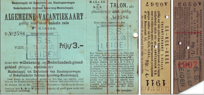 Voordat de NV Nederlandsche Spoorwegen op 1 januari 1938 tot stand kwam, zelfs lang voor de overeenkomst van voorgangers HSM en SS inzake een gezamenlijk reizigerstarief in 1911, waren al vakantiekaarten te koop. Vermoedelijk een uitvinding van de SS en door haar samen met de NCS en later ook de NBDS uitgegeven.