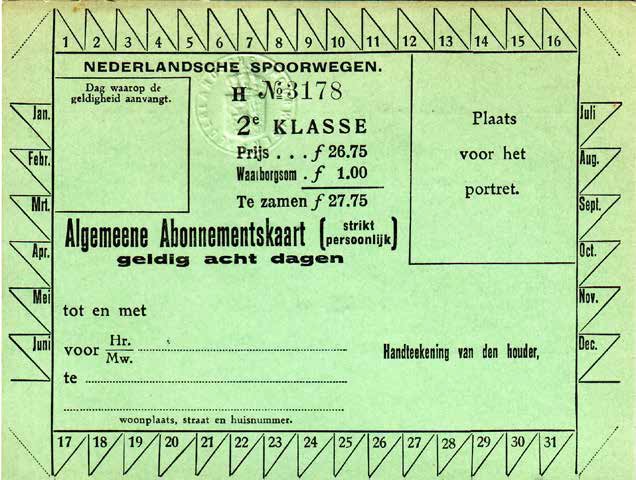 In 1928 werden de Olympische Spelen in Nederland gehouden. Daar er een grote hoeveelheid buitenlandse bezoekers verwacht werd, leek het de Nederlandse spoorweg maatschappijen een goed idee om voor hen en andere toeristen, naast de al bestaande kaarten voor een maand of langer, een achtdaagse algemene abonnementskaart in te voeren.