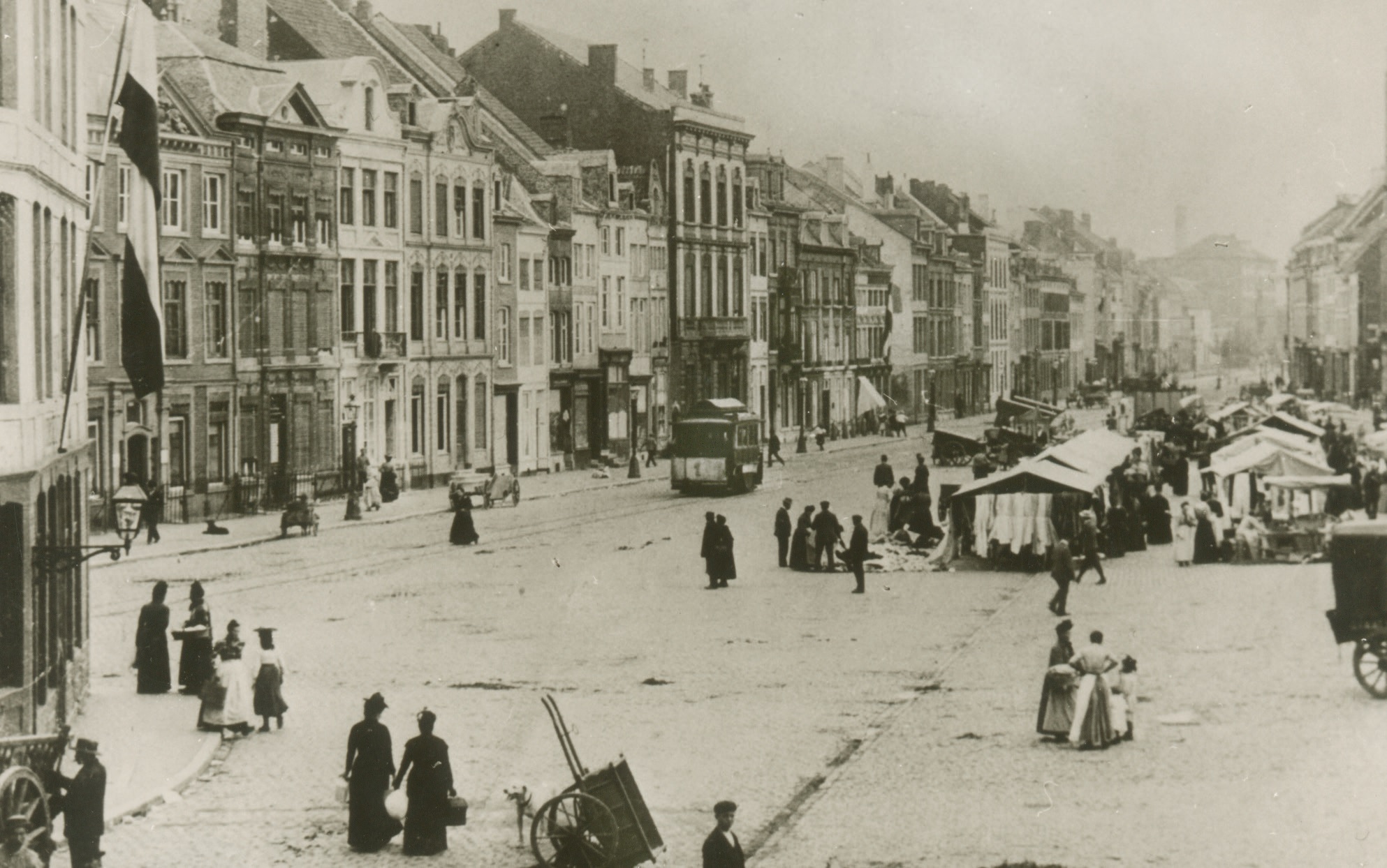 Gastram 1 komt omstreeks 1900 vanuit de Boschstraat aan op de Markt en zal zijn weg naar het Vrijthof en station vervolgen door links tussen de huizen de Grote Gracht in te rijden.