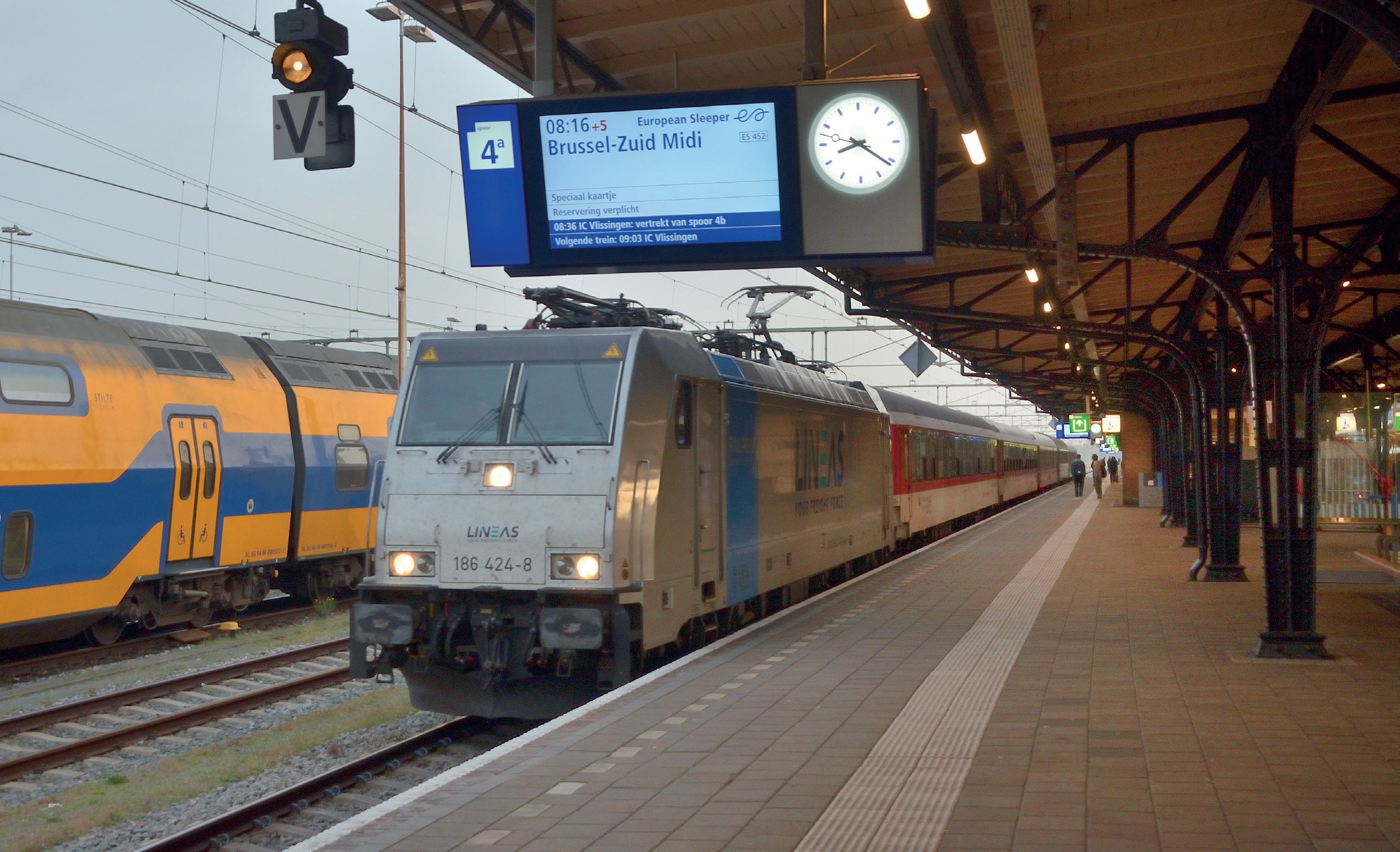 Traxx-locomotief 186 424 met de uit vijf rijtuigen bestaande European Sleeper 452 naar Brussel-