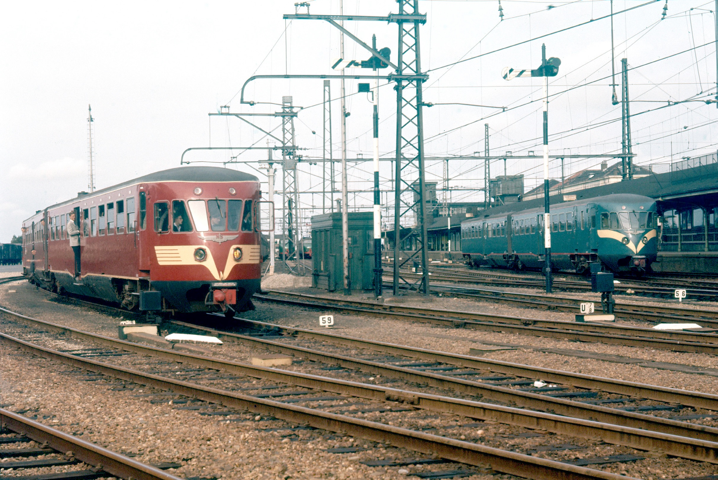 Op 13 november 1959 komt DE2 88 als eerste ‘Blauwe Engel’ in het rood op de baan. Ruim een half jaar later organiseert de NVBS haar jaarlijkse dieselrondrit met dit treinstel, hier in Alkmaar. | 19-06-1960