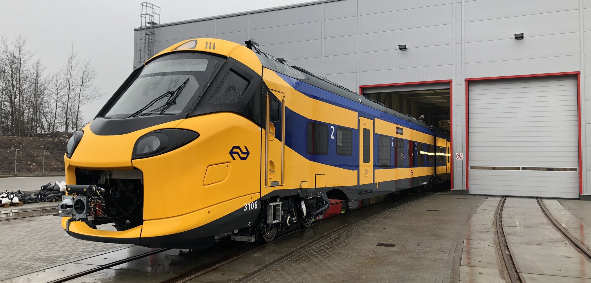 Een treinstel dat is voorbereid op de digitale toekomst: het nieuwe ICNG-vijfwagenstel 3106 bij de fabriek van Alstom in Chorzów/Katowice (PL); 28 januari 2020. Foto: Tadeusz Krupnik.