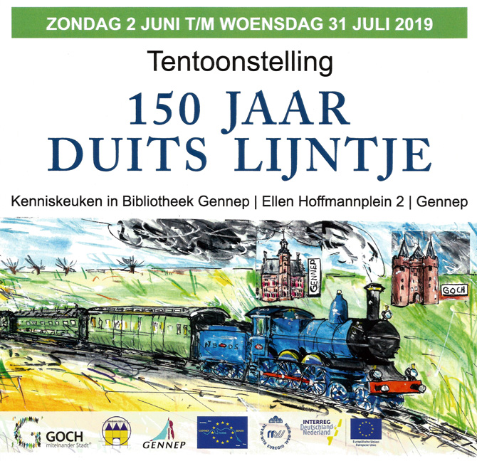 Zondag 2 juni t/m woensdag 31 juli 2019: tentoonstelling over het “Duits Lijntje” (Boxteler Bahn) in de bibliotheek van Gennep, Ellen Hoffmanplein 2. Maandag 13.30-17.30, dinsdag 10.00-17.30, woensdag 13.30-17.30, donderdag 10.00-17.30, vrijdag 10.00-19.00, zaterdag 10.00-13.00 uur.