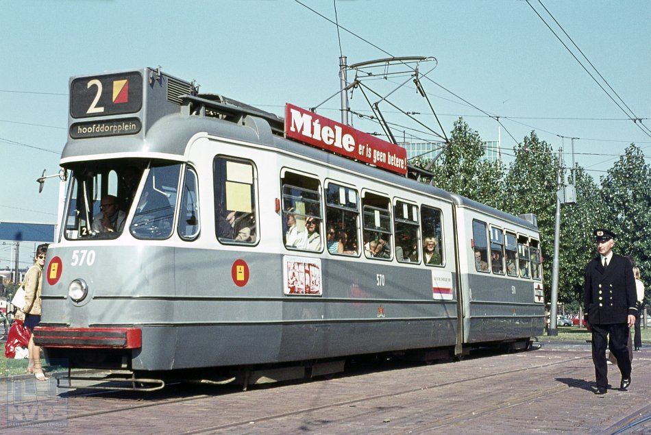 Een van de vele foto’s uit de beeldbank van de NVBS. Gelede motorwagen GVB 570 in de tramoptocht in Amsterdam ter gelegenheid van het 40-jarig bestaan van de NVBS op 11 september 1971. Foto: René Jongerius.