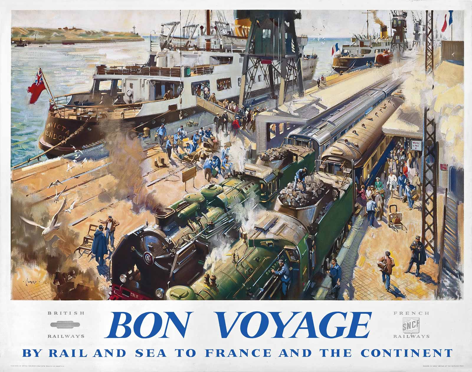 Sommige spoorwegaffiches zijn ook scheepvaartaffiches. Midden 19e eeuw ontstonden er boottreinen in aansluiting op veerdiensten, die soms speciaal waren opgericht door spoorwegmaatschappijen. Beide vervoermiddelen vulden elkaar aan met een directe overstap op de kade. Boottreinen boden aansluiting op korte oversteken van en naar Engeland of Scandinavië, maar evengoed op de grote oceaanlijnen naar andere werelddelen. Een speciaal geval was de spoorferry, waar de trein op en af kon rijden voor een ononderbroken reiservaring. Boottreinen hebben enkele van de meest geslaagde spoorwegaffiches opgeleverd.