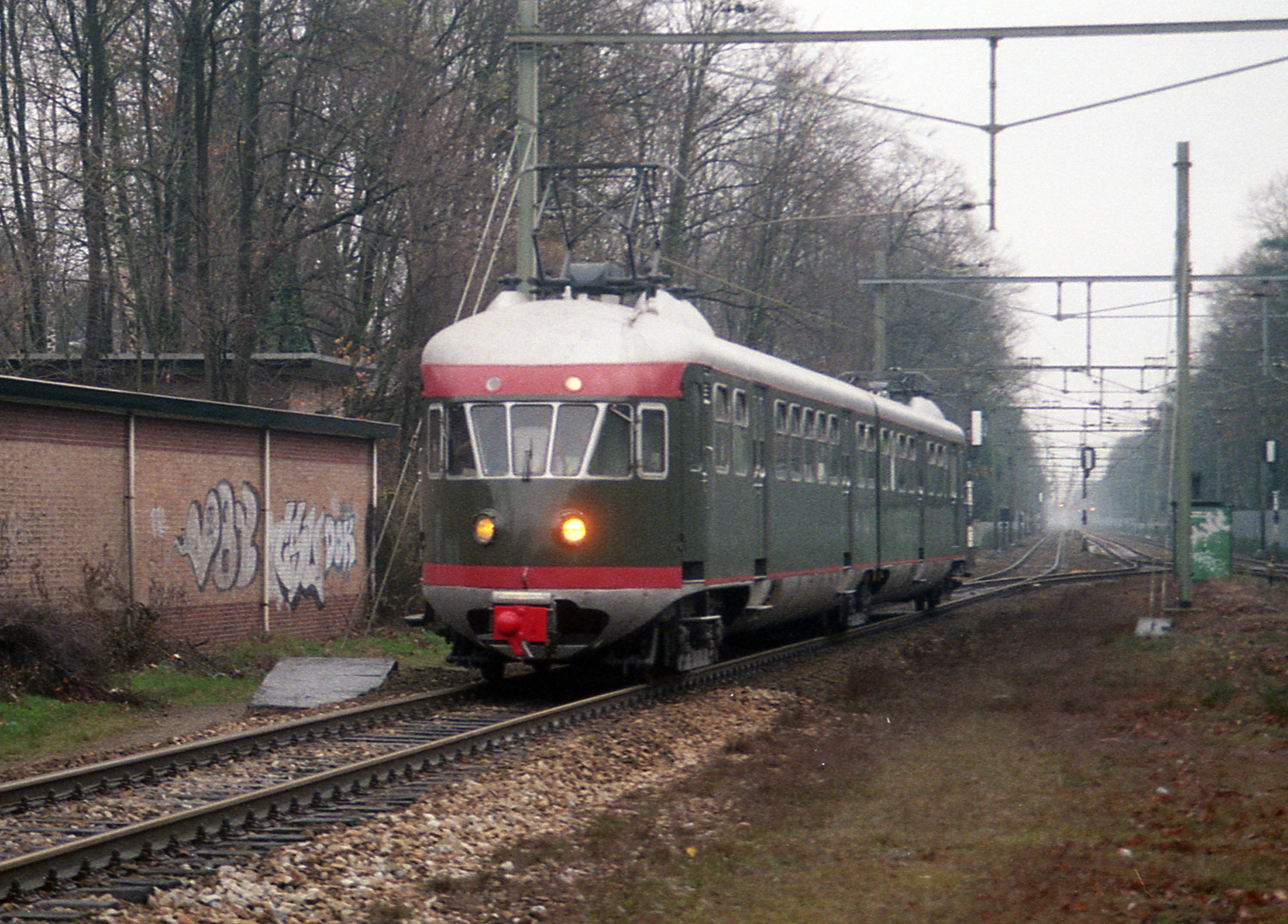 Treinstel 273 verlaat het middenspoor bij Bilthoven, 29 november 2002. Foto: Nico Spilt.