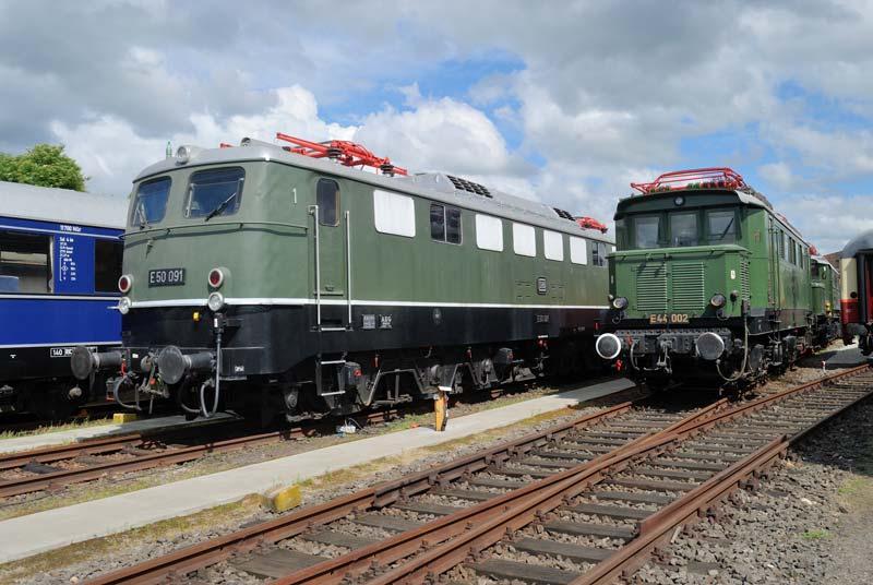 E50 091 en E44 002 op het museumterrein in Koblenz. Foto: Han Duijve.