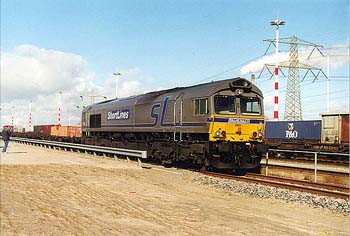 Na de lunch werd doorgereden naar het Distripark Maasvlakte, waar tot ieders verrassing een kleine materieelshow was verzorgd, met ShortLines’ class 66 PB01 in een fraaie lentezon. Niet moe, maar wel voldaan keerden de deelnemers halverwege de middag terug op het startpunt. Een woord van dank gaat uit naar ECT, die door een hartverwarmende medewerking deze excursie tot een succes heeft gemaakt.