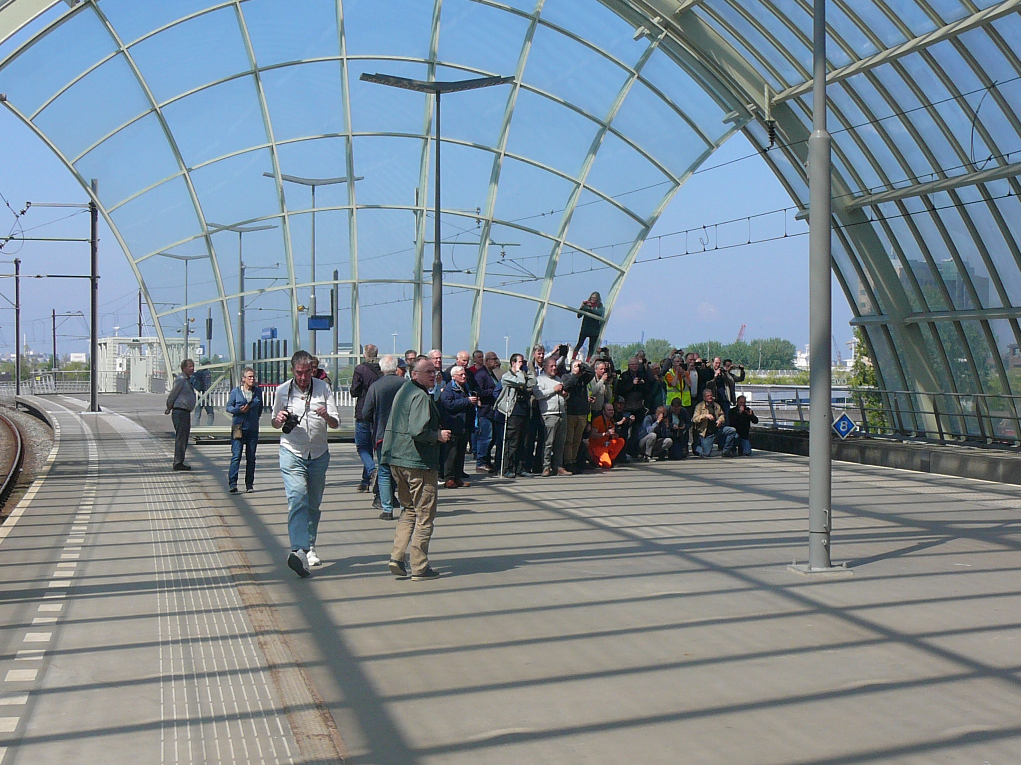 Inmiddels begin het al redelijk op te klaren en de rest van de dag zou de zon ons welgezind zijn! De fotolijnen waren dan ook steeds druk bezet wat mede tot gevolg had dat op diverse stations snoepautomaten, kasten met installaties en steunpunten van perronkappen als dankbare verhogingen functioneerden. Het halve uur vertraging werd ingelopen door in Hoofddorp het Opstelterrein links te laten liggen. Een mooie stop was vervolgens het hooggelegen gebogen perron op Amsterdam Sloterdijk.