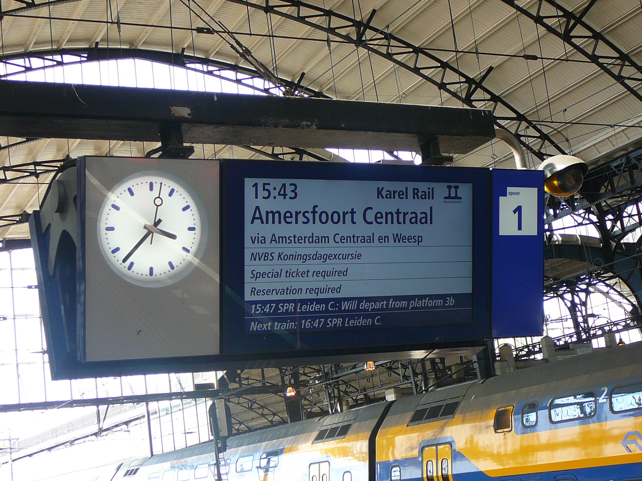 Treinaanwijzer op station Haarlem, 26 april 2025. Saillant detail: in Amsterdam Centraal werd wel gestopt, maar niet op een perronspoor. Foto Frank Hoogenboom
