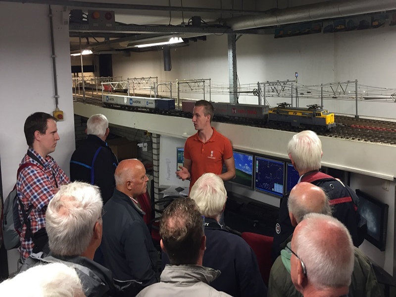 De laatste NVBS-excursie naar Madurodam vond plaats in 1953 en sinds die tijd is er het nodige verbouwd en veranderd. Het werd anno 2018 dus tijd voor een hernieuwde kennismaking middels een kijkje achter de schermen waarbij we werden bijgepraat door werkplaatsmedewerker Dave van der Linden over het reilen en zeilen van de verkeersleiding en werkplaats. Op 20 september 2018 waren vijftig NVBS’ers te gast, die in twee groepen een rondleiding kregen in de treinenkelder en uitleg kregen over de techniek om de treinenloop in goede banen te leiden. Het animo was zo groot dat de excursie op 11 oktober 2018 werd herhaald voor nog eens 42 personen. Het park, ook wel de tuin genoemd, beschikt over 4,5 kilometer spoor en liefst 2000 bovenleidingsportalen. Er werden antwoorden gegeven over het onderhoud van de treinen die wel 15.000 kilometer per jaar rijden en de productie van de modellen met schaal 1: 25. Vroeger werd veel van hout gemaakt maar tegenwoordig maakt men de treinen van kunststof/epoxyhars en is alles beter bestand tegen de weersomstandigheden. Men loopt tegen dezelfde problemen aan die bij het grootspoor ook optreden: de ligging dicht bij de kust en de zeewind zorgt voor veel noodzakelijk onderhoud. Gelukkig rijdt er naast modern NS-materieel ook ouder materieel rond, zoals de populaire e-loc 1200. Na de rondleiding kon iedereen zijns/haars weegs gaan om op eigen gelegenheid het park verkennen. Voor velen was het bezoek aan Madurodam het eerste sinds de jeugdjaren.
