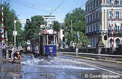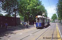 Hierna werd in gezamenlijkheid met GVB-museummaterieel (motorwagen 464 uit 1929 en bijwagen 807 uit 1914) kriskras door het centrum van Amsterdam getramd onder de enthousiaste leiding van Frits van der Gragt en Edward Stokhof. In de Plantage Parklaan werd de eerste fotostop gehouden, een voor sommige deelnemers nog onbekend fenomeen! Vervolgens ging het via de remise Havenstraat naar het Amsterdams Openbaar Vervoermuseum aan de Tollensstraat, waar het opgestelde materieel kon worden aanschouwd. Zonnig zomerweer, een verfrissende wind en een interessant programma maakte dat de nieuwe leden opgewekt huiswaarts togen, waarschijnlijk met het voornemen om vaker met de SNE mee te gaan.