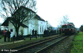 Op zaterdag 18 december 1999 togen circa 75 NVBS’ers naar Kerkrade Centrum om vandaar uit een rit te gaan maken met het driedelige Schienenbus Garnitur van de Zuid Limburgse Stoomtrein Maatschappij. Allereerst werd er non-stop koersgezet naar het andere eindpunt van de lijn te Schin op Geul. Speciaal voor onze deelnemers was de stationsrestauratie geopend welke ons van koffie e.d. voorzag.