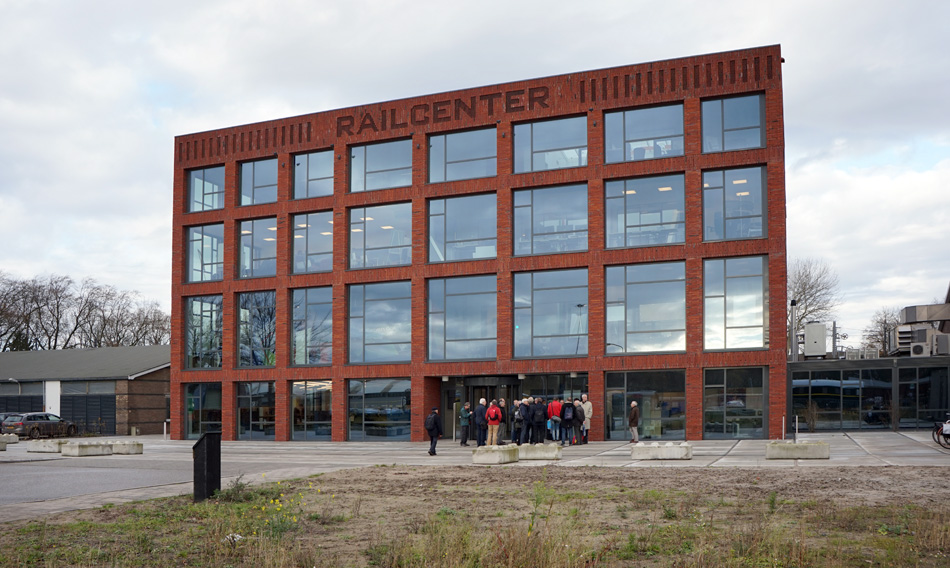 Het nieuwe gebouw van het Railcenter. Hier vinden onder andere opleidingen en presentaties plaats. In de bijgebouwen en op het buitenterrein zijn uiteenlopende technische installaties opgesteld.