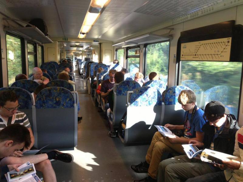 Vrijdag 23 augustus 2013 bracht de NVBS-afdeling Jongeren met 27 deelnemers een bezoek aan Keulen en omgeving. Rond negen uur verzamelden de deelnemers van jong tot oud zich vanuit diverse delen van het land en zelfs vanuit het plaatselijke hotel op station Venlo om vanaf daar met een Flirt van eurobahn naar Mönchengladbach te reizen. In de trein werden de programmaboekjes met het reisschema en achtergrondinformatie aan de deelnemers uitgereikt én daarbij een gevulde koek.