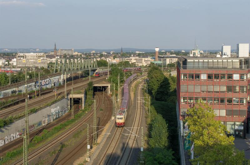 Als hoogtepunt van de dag kon aan het begin van de avond IC 118 van Salzburg (A) naar Münster getrokken door de 103 113 worden vastgelegd vanaf een parkeergarage nabij Köln Messe/Deutz.