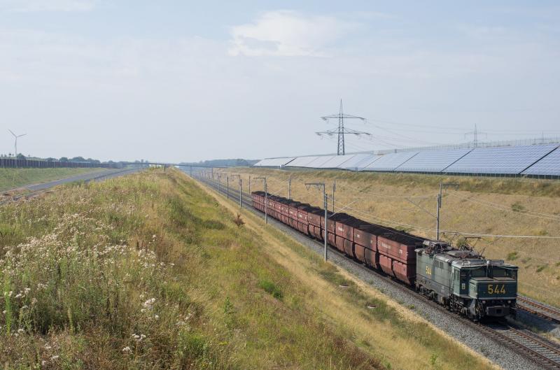 Het enthousiasme was groot toen de groene 544 met een beladen bruinkooltrein passeerde.