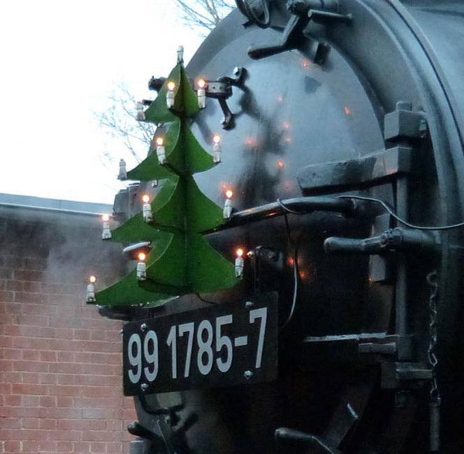 De Fichtelbergbahn is volop in kerstsfeer. Foto: Clemens Boomers.