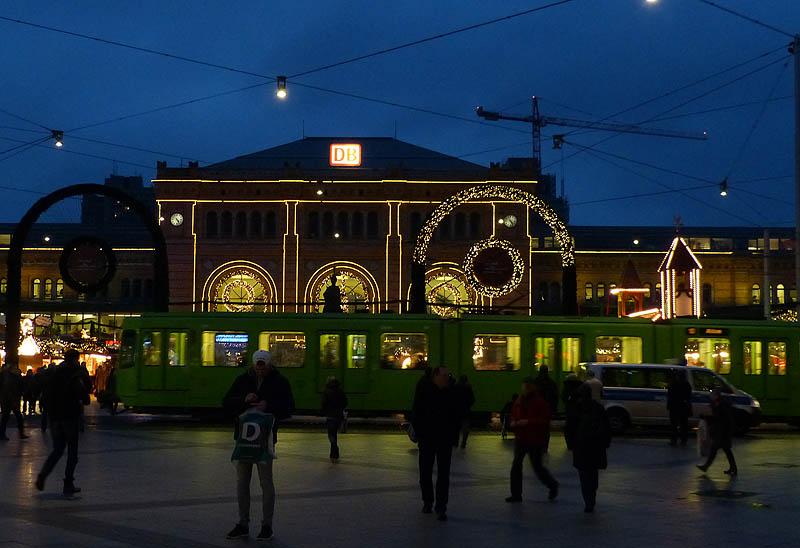 Het Hauptbahnhof van Hannover is op 15 december 2014 feestelijk verlicht. Foto: Clemens Boomers.