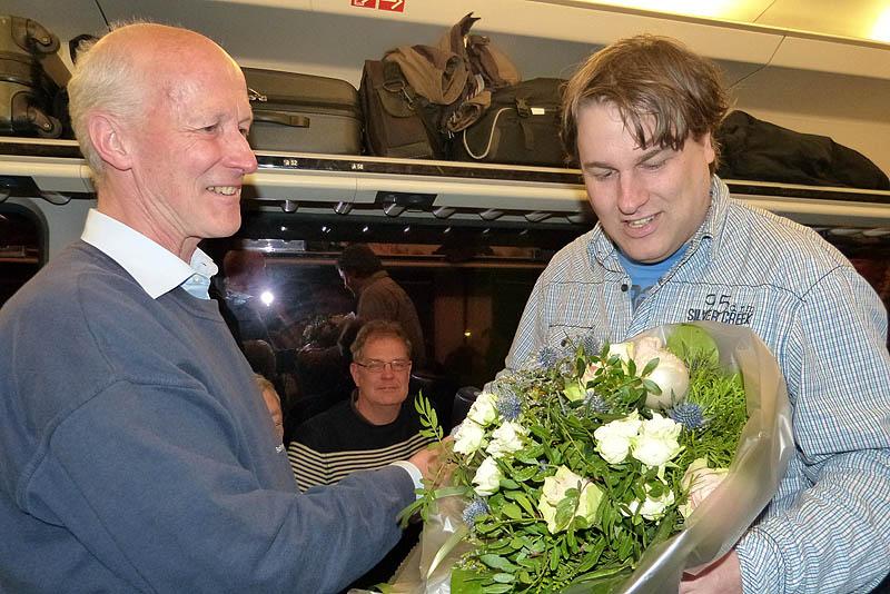 Op de slotdag maandag 15 december waren we minder gelukkig. Door verschillende omstandigheden waren treinen vertraagd of omgeleid, zodat we twee uren later dan gepland in Magdeburg aankwamen. Helaas moesten daardoor de tramritten en het bezoek aan het trammuseum geannuleerd worden. We zijn doorgereden via Hannover naar Hengelo. Daar stond als verrassing NVBS-voorzitter Maikel Rörik klaar met een grote bos bloemen voor Clemens en Minie Boomers als dank voor het vele werk dat zij voor de SNE verricht hebben. Ondanks de pech in Magdeburg was deze reis toch weer een bijzondere ervaring.