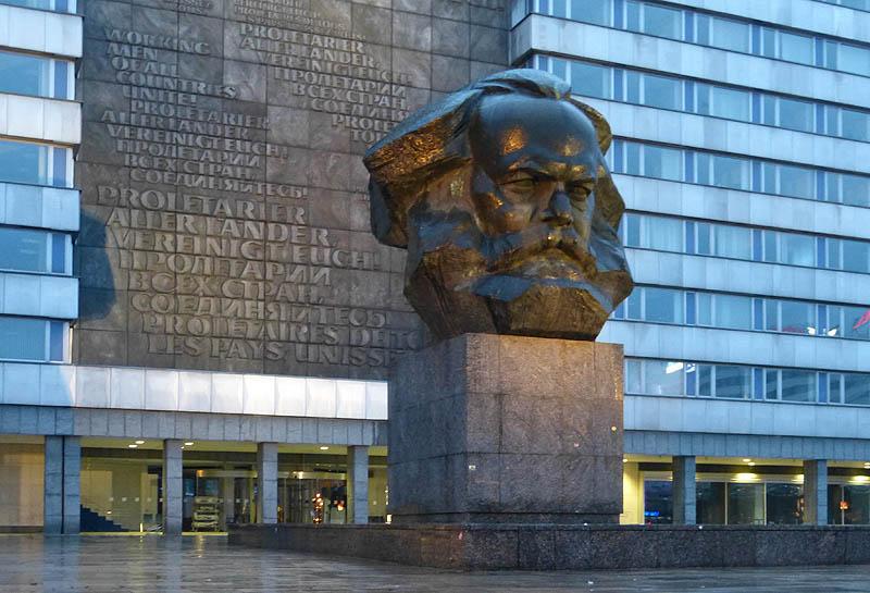 De imposante kop van Karl Marx nabij ons hotel in Chemnitz, 13 december 2014. Foto: Clemens Boomers.
