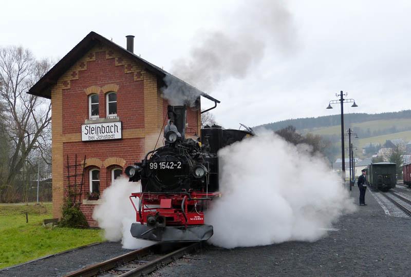 Op zondag stonden stoomritten op de smalspoorlijnen van Steinbach naar Jöhstadt en van Cranzahl naar Oberwiesenthal op het programma. Op het eerste traject kregen we de gelegenheid een aantal leuke fotostops te maken en de bedrijfsvoering van nabij te bekijken. In Oberwiesenthal was nog enige sneeuw te zien op de skipiste die geopend was. Aan het einde van de dag was er een afscheidsdiner in een toepasselijke omgeving, namelijk in een voormalig restauratierijtuig in Wolkenstein, dat tot restaurant was omgebouwd. Omdat het de laatste reis was die Clemens organiseert, werden daar een aantal herinneringen aan hem en zijn vrouw Minie opgehaald.