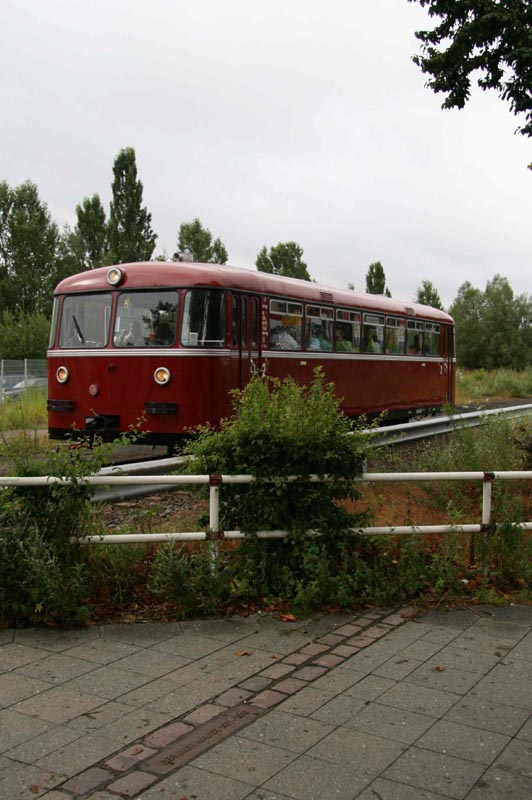 Zaterdag stond er nog een Schienenbusrit op het programma, op het net van de Heidekrautbahn, met ten dele een traject dat tijdens de deling zowat op de grens tussen oost en west lag. De lijn bleef tijdens die periode zelfs in dienst voor goederentransport. We reden Berlijn uit in noordelijke richting en kwamen via Gross-Schönebeck en Schmachtenhagen in Basdorf. Aldaar een leuk museum en een lekkere barbecue, bereid door de Berliner Eisenbahnfreunde. Een paar dorpen verderop, in Schmachtenhagen, werd koffie geserveerd op een soort boerenmarkt waar veel lokale producten verkocht werden. Wie wilde kon inhaken en meedeinen met een boerenblaaskapel.