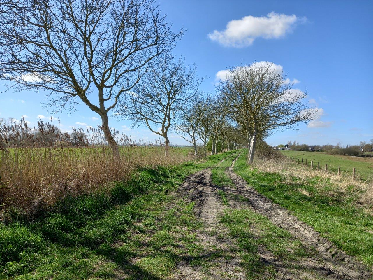 De Plattedijk bij Pyramide. Het tramspoor liep ooit rechts van de bomen, 29 maart 2025. Foto H.J.M. Bakker