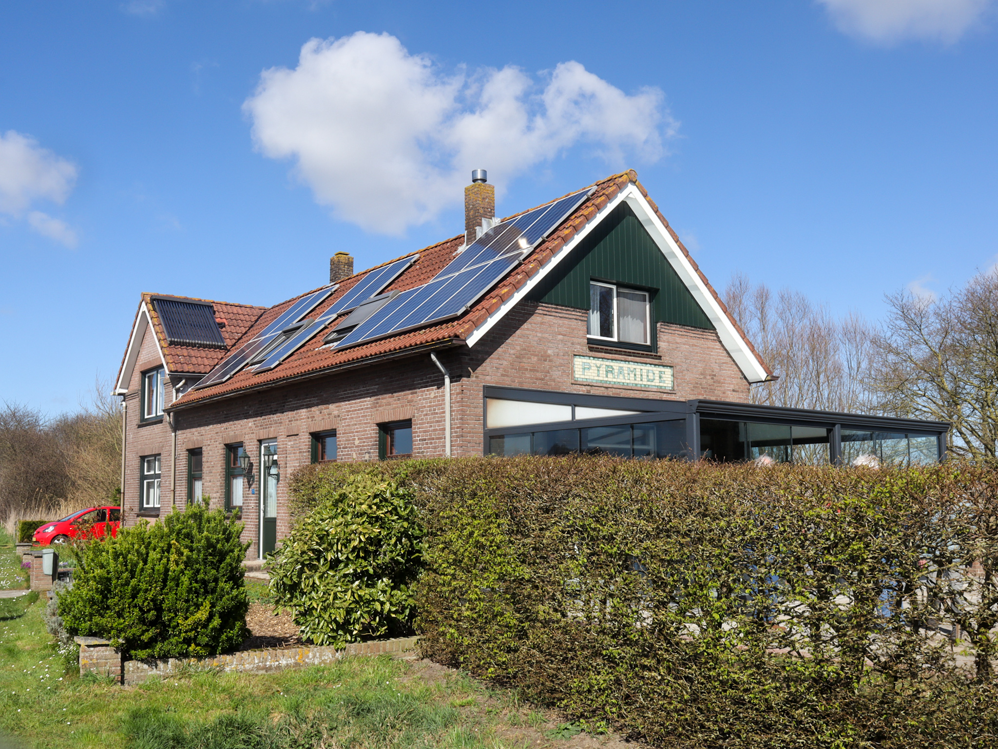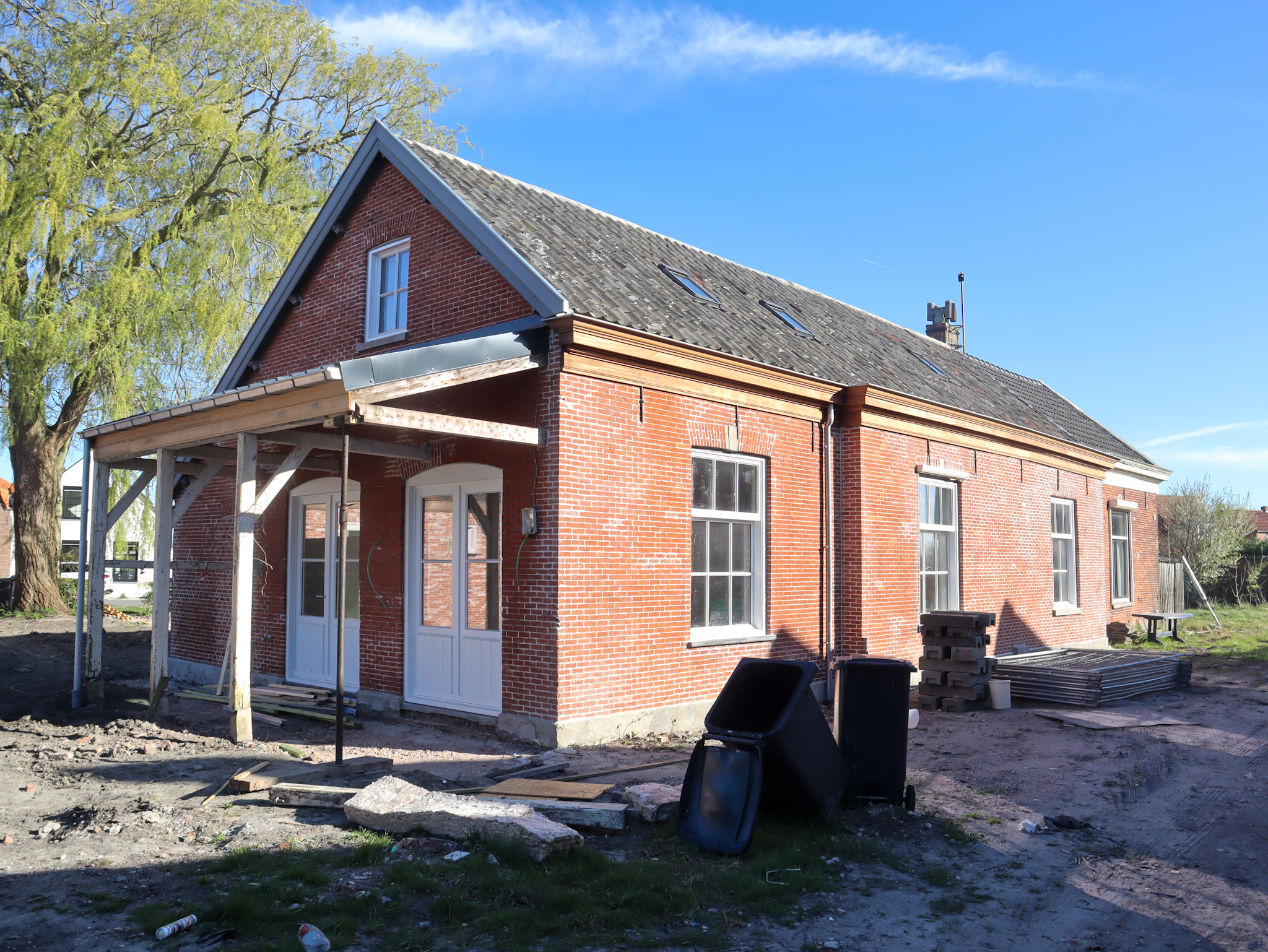 In Axel hebben we daarvóór al een koffiestop gehad met de befaamde kleverige Zeeuwse bolus. Een ander hoogtepunt was het voormalige tramstation in Pyramide, bereikt na een korte wandeling over het voormalige tramtracé. 5 Jaar geleden zag het gebouw er niet erg florissant uit maar anno 2025 is het opgeknapt en voorzien van een fraaie serre waar de eigenaren een collage hebben uitgestald van boeken, foto’s en artikelen over de tram ter plekke. Voor iedereen een leuke en onverwachte verrassing.