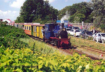 De excursie naar het grootste Duitse Waddeneiland op zaterdag 4 augustus 2001 begon op perron 3a van het prachtig gerestaureerde station van Groningen. Vanaf dat perron vertrok het grootste gedeelte van het gezelschap met NoordNed-Wadloper 3223. Vanwege de vele aanmeldingen aan de excursie, totaal 176, konden niet alle mensen in de trein naar de Eemshaven. Dus zoals de NS ook vaak doet, moest een klein gedeelte aanmelders met de bus. Na een kruising in het plaatsje Usquert, waar trouwens ook gelegenheid tot fotograferen was, en enig oponthoud in de Eemshaven met wat wissels, kon iedereen op de boot stappen. Na een uur kwamen we aan in het haventje van Borkum-Reede. Op het havenspoortje werd op deze dag voor het eerst kennis gemaakt met de Borkumer Kleinbahn. Het was een reguliere reizigerstrein voor toeristen die van de boot kwamen en naar het plaatsje Borkum wilden gaan. Onze stoomtrein, getrokken door het blauwe tenderlokje Borkum (ex-Dollard) die niet zoals gewoonlijk met kolen of gewone olie gestookt wordt maar haar energie krijgt uit plantaardige of lijnzaadolie, kwam enige tijd later. Dit kleine bedrijfje rijdt op een autoluw eiland. Automobilisten mogen hier twee uur na aankomsttijd of twee uur voor het vertrek met hun auto rijden. Het materieel dat achter het tenderlocje hing, waren de historische Jägermeister-rijtuigen uit de jaren vijftig.