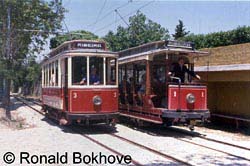 De andere groep kon in het verhalen natuurlijk niet achterblijven en maakte de reisgenoten warm voor Lissabon. Men had hier met twee extra trams rondgereden, waarbij de rit door het oude centrum zich afspeelde in een uniek decor van onwaarschijnlijk steile hellingen en een vrij profiel dat soms nauwelijks ruimte bood voor passerende voetgangers. Het metronet van de Portugese hoofdstad daarentegen oogde modern met schone, ruime stations en eigentijds materieel. De voor de hoteldeur gelegen halte Olaias had wel wat weg van een museum voor moderne kunst, maar hier werd door de collega’s dan weer het Guggenheim-museum in Bilbao tegenover gezet. Ook Madrid oogstte lof voor het goed functionerende stadsverkeer. De tram in Sintra heeft alleen nog een museale functie. Dat maakte de rit er niet minder interessant op, speciaal voor de groep werd haasje-over met drie trams naar de Atlantische Kust gereden.