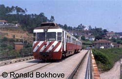 Het samenkomen van de groepen ging gepaard met twee treinexcursies, in beide gevallen met inzet van Nederlands materieel. Tussen Coimbra en Serpins werd de Blauwe Engel benut, Allan-motorwagen 304 uit 1953 die twee jaar geleden in de afleveringskleur is teruggeschilderd. Het straatspoor van Coimbra was op de heenweg een attractie van formaat, waarbij het treinstel onder politie-escorte door het drukke verkeer werd geloodst, omringd door deelnemers die in tropische temperaturen al fotograferend meeholden. Terug liep het anders en toen de versperring van twaalf op de rails geparkeerde auto’s was opgeheven, bleek de vertraging van een half uur juist voldoende om de Alfa Pendular Expres, het paradepaardje van de Portugese Spoorwegen, te zien wegrijden. Dat werd dus boemelen naar Porto. Een dag later werd met het voltallige gezelschap in een extra trein, bestaande uit een Allan-motorwagen met bijwagen de bedreigde smalspoorlijn Espinho – Aveiro bereden. De gecombineerde spoor-weg-brug bij Sernada do Vouga – met kettingafsluiting voor het wegverkeer – vormde met het hooggelegen stadje als achtergrond een dankbaar fotomotief.