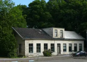 Weer in de bus namen we de tijd om het tracé bij Follega te bekijken waar de kleine aangebouwde wachtkamer voor de tram nog te zien was, maar het oude brugwachtershuisje door een moderne woning was vervangen. In Sint Nicolaasga stopten we bij het station dat er nog redelijk kloek maar wel volledig ingebouwd bij stond (foto 3). Van hier tot Scharsterbrug ligt een fietspad op de oude trambaan. Bij Scharsterbrug konden we, hooggezeten in de bus, net over de schutting het achterliggende tracé zien. Terug in Joure zetten we koers naar het tramtracé richting Sneek dat hier ooit, in 1886, dwars door het waterrijke gebied was aangelegd op een zomerdijk die Rijkswaterstaat toen toch al aan het leggen was. Werk met werk maken dus! Onderweg wees Wytze ons op de diverse bruggenhoofden en pijlers die er nog van de tram te vinden waren én we stopten even om de oude halte Uitwellingerga te bezichtigen die er na de aanleg van het Margrietkanaal wat verscholen en verloren achter de opgehoogde weg bij stond (foto 4). In Sneek kregen we weer ruim de tijd een openstaande brug en vele schepen te bekijken vooraleer we langs het park reden waar ooit het emplacement van de tram had gelegen.