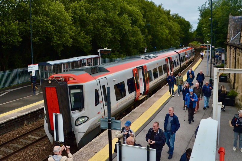 Ruabon met Transport for Wales 197 013 op weg Holyhead naar Cardiff, 18 juni 2024. Foto: Frans van Sabben.