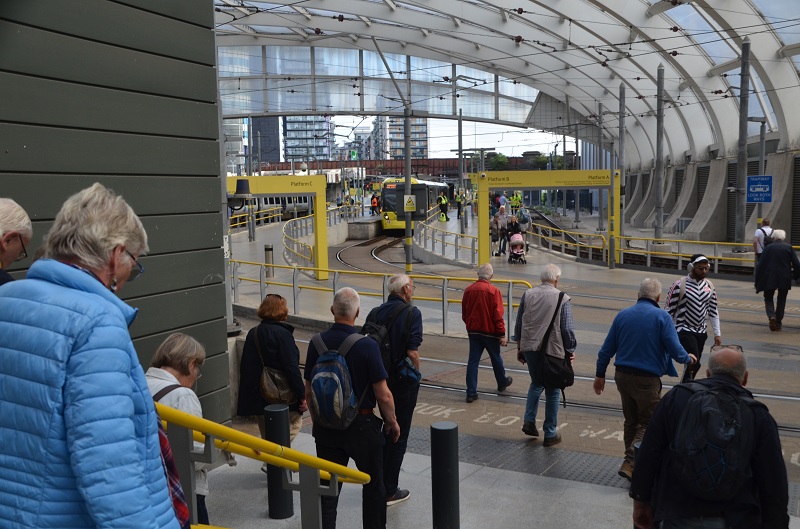 Het tramstation in Manchester Victoria vormt één geheel met het treinstation voor een gemakkelijke overstap, 20 juni 2024. Foto: Frans van Sabben.