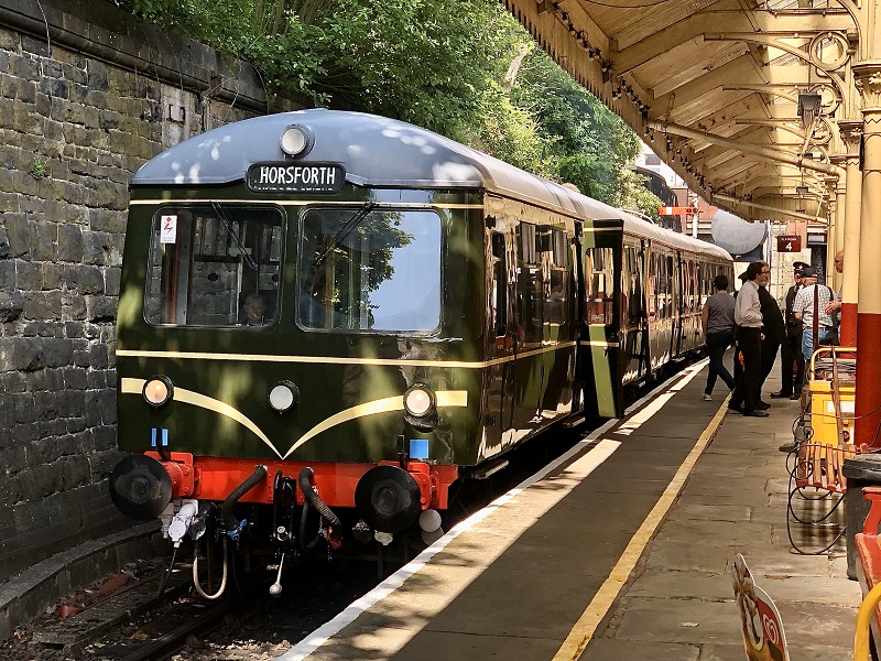 Class 105 tweewagenstel E56121 aan het perron in Bury Bolton Street voor vertrek naar Heywood Groundframe, 20 juni 2024. Foto: Frans van Sabben.