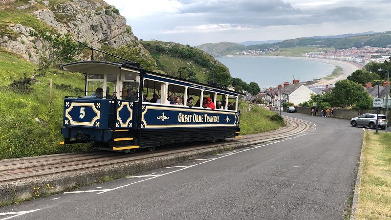 The Great Orme Tramway in Llandudno met tram 5 op weg naar het dalstation, 21 juni 2024. Foto: Frans van Sabben.