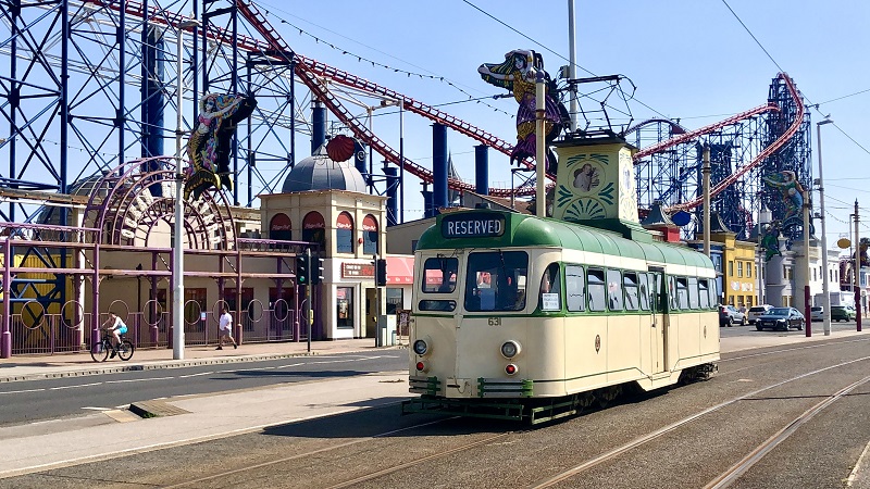 Blackpool is de enige klassieke tramstad in Engeland. Een week voor ons bezoek is daar een nieuwe zijtak geopend tussen het noordstation en de boulevard. Met een diensttram en de medewerking van het personeel worden de acht hectometers gratis afgelegd en wordt bij de North Pier overgestapt op dubbeldekker Balloon 717 die ons naar het noordelijke eindpunt Fleetwood Ferry brengt. Terug bij de pier volgt een pauze, waarin we een mooie strandwandeling kunnen maken of ons kunnen vergapen aan het soms wat platte vertier waaraan de bezoekers (wij niet natuurlijk!) zich in deze badplaats overgeven. Met Crunch Car 631 gaat het zuidwaarts naar de werkplaats bij Starr Gate waar een rondleiding plaatsvindt (veiligheidshesjes aan, voorzover beschikbaar). Hier vinden we ook andere tramklassiekers, waaronder een open top car. Terug naar Liverpool rijden we vanaf dieseleindpunt Blackpool South om nog wat nieuwe treinkilometers bij te kunnen schrijven.