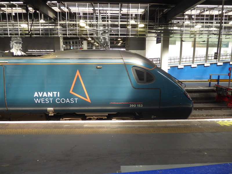 Kop van de 390 153 in Londen Euston, kantelbakmaterieel van Avanti West Coast dat onder meer ingezet wordt tussen Liverpool en Londen; 27 juni 2024. Foto: Rob Zoomer.