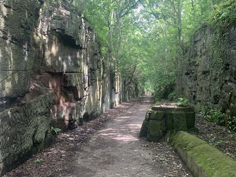 Insnijding van het Wirral Way Path tussen Hadlow Road en Neston, tot 1962 reden hier nog treinen; 21 juni 2024. Foto: Ronald Bokhove.