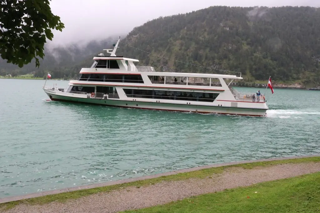 ![]() Boot “Stadt Innsbruck” na vertrek van de aanlegsteiger Gaisalm, 2 september 2019. Foto: Hans Krijnen. |