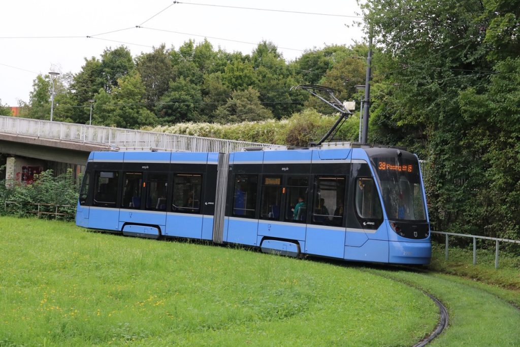 ![]() De kleine Avenio’s reden op de tijdelijke, geïsoleerd liggende tramlijn 38. Hier bij het eindpunt Gondrellplatz, 7 september 2019. Foto: Hans Krijnen. |