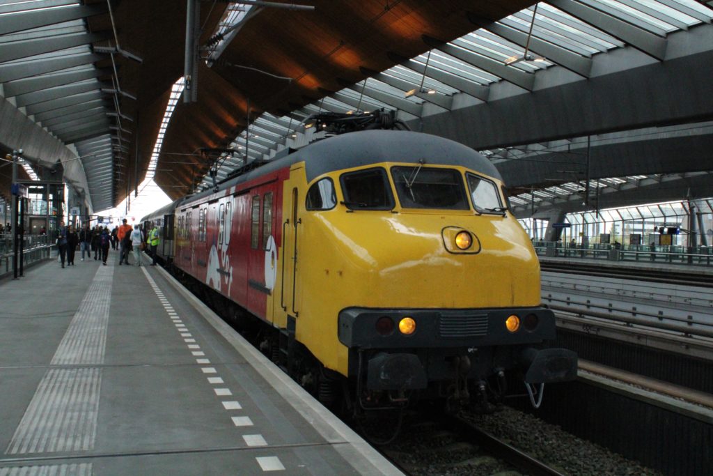 Schiedam Centrum waar de excursietreinen de ongebruikte sporen 1 en 2 bezetten. Foto: Kees Jongkees.